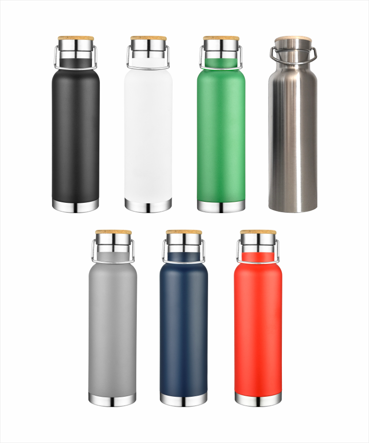 ![]() 22oz Double Wall Stainless Steel Vacuum Insulated Travel Bottle with Bamboo Lid. Powder Coated |