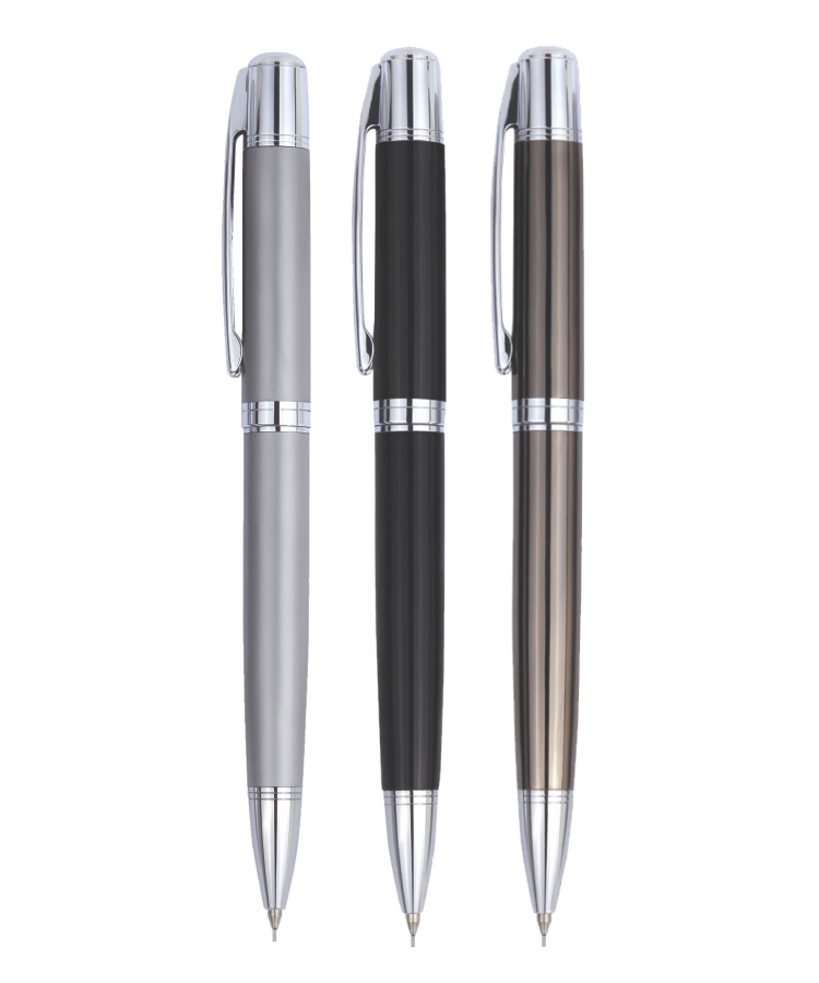 - This sleek, twist-action mechanical pencil features shiny metal accents that combine style and sophistication, making it an ideal promotional item for any business or event.