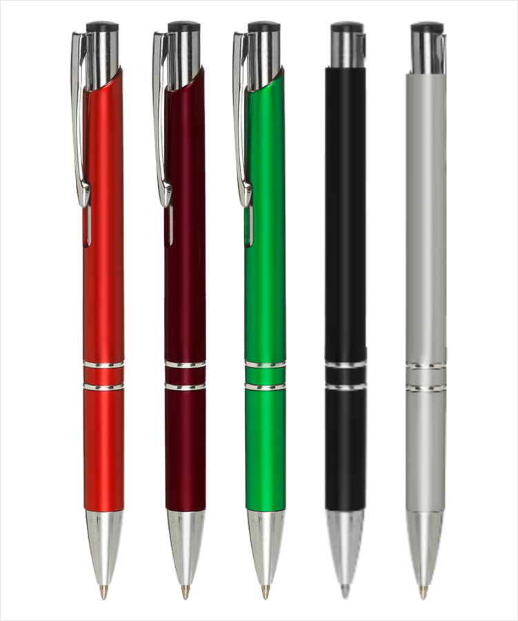 - Union Printed, "Queenly" Click Pens, These Click Action pens feature the latest featured executive style pocket clip and metallic silver color accents.