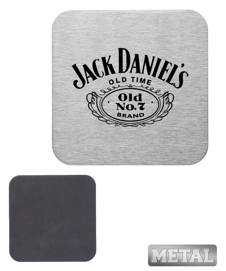 Union Printed - 4 inch Square Stainless Steel Metal Coasters with 1-Color Print