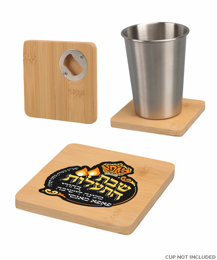 Union Printed - 4 inch Square Bamboo Coaster with Beer Opener - Laser Engraved Logo