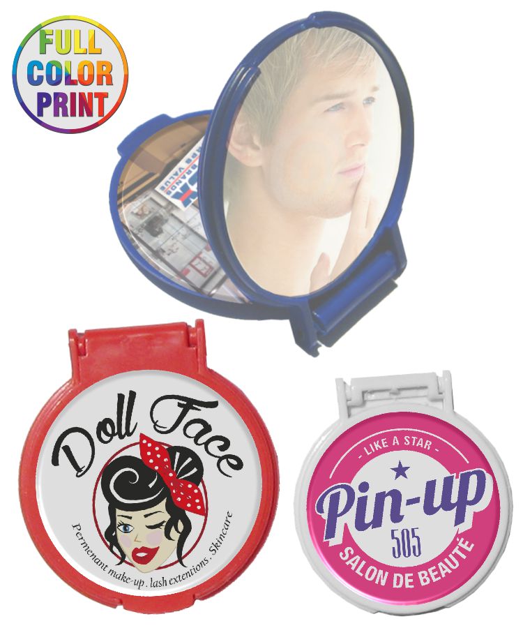 Union Printed - Pocket Size Mirror (2.5 inch Rouns) with Full-Color Dome Logo