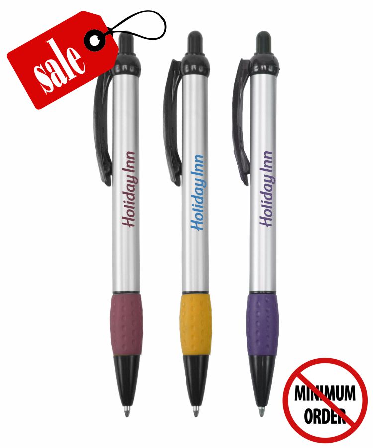 Promotional - Jolly Jotter - Silver Barrels Ballpoint Pens with Colored Trim and Rubber Grip