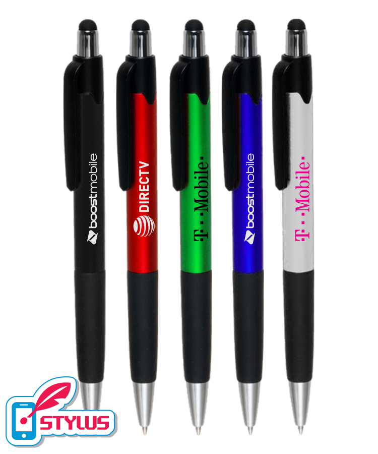 Union Printed - Plushy - Stylus Clicker Pens with Rubber Grip 1-Color Logo