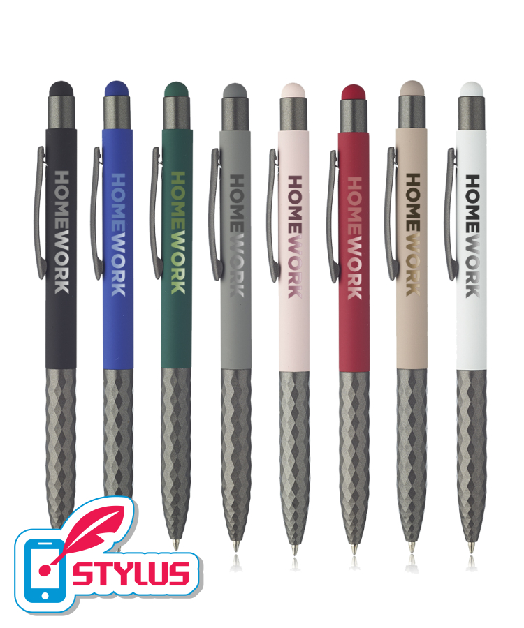 Union Printed - Geometric Aluminum BallPoint Pens with Stylus