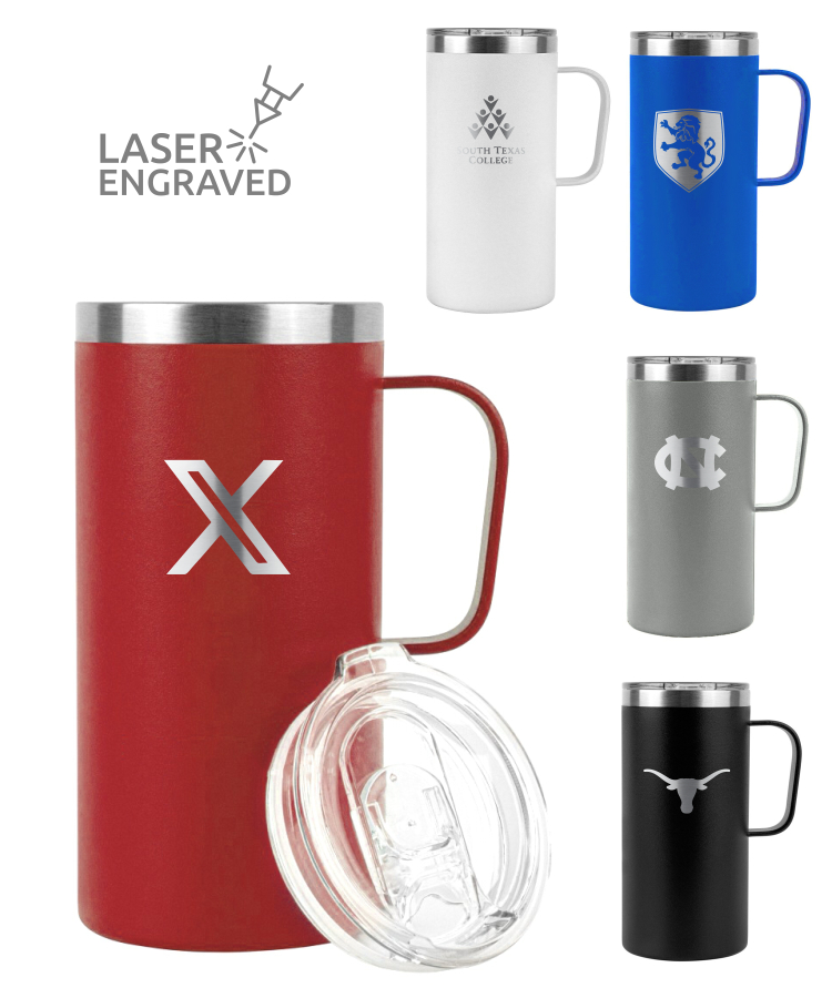 20oz Large Vacuum Camp Mug - Double Wall Stainless Steel - Powder Coated