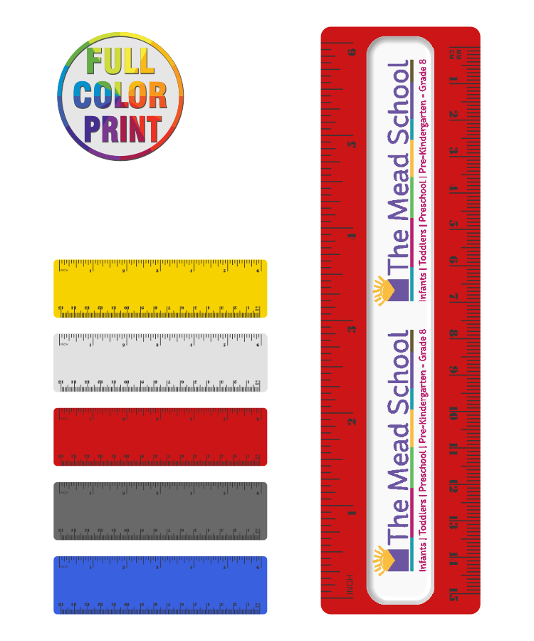Union Printed - Frosted Colored 6 inch Ruler with standard and metric measurement units - Full Color Dome Print