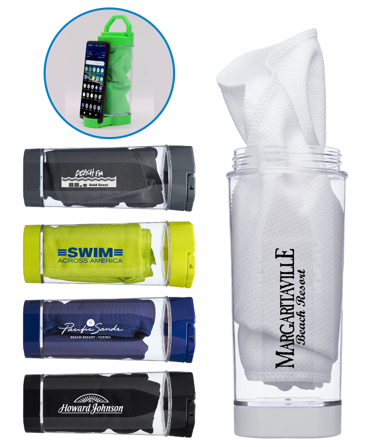 Union Prined - 2-in-1 Cooling Towel In Phone Stand Carabiner Case - Full Color