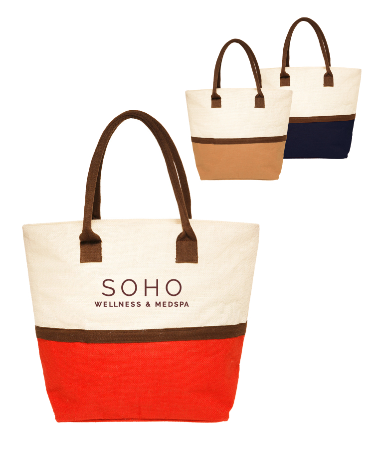 Union Printed - Two-Tone Jute Beach Tote Bags