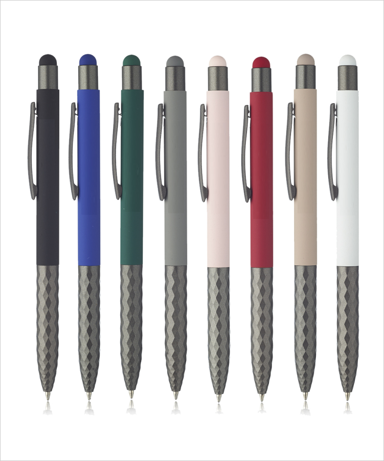 • Introducing our Geometric Aluminum Ballpoint Pens with Stylus - a sleek and functional writing tool for modern professionals.