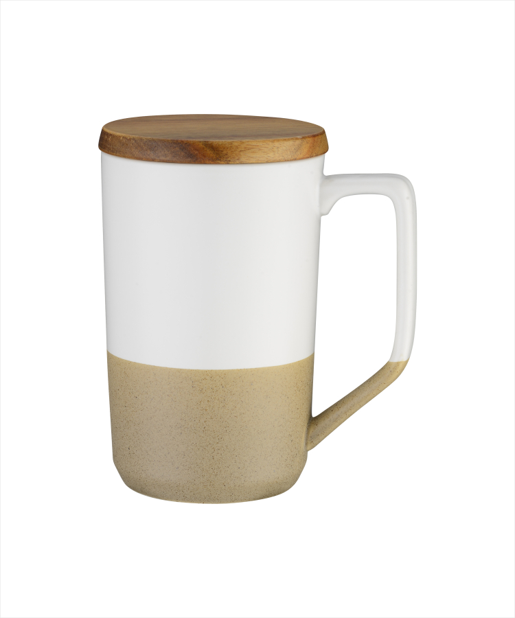 ![]() 15 oz Two-Tone Ceramic Mug w/ Wood lid |