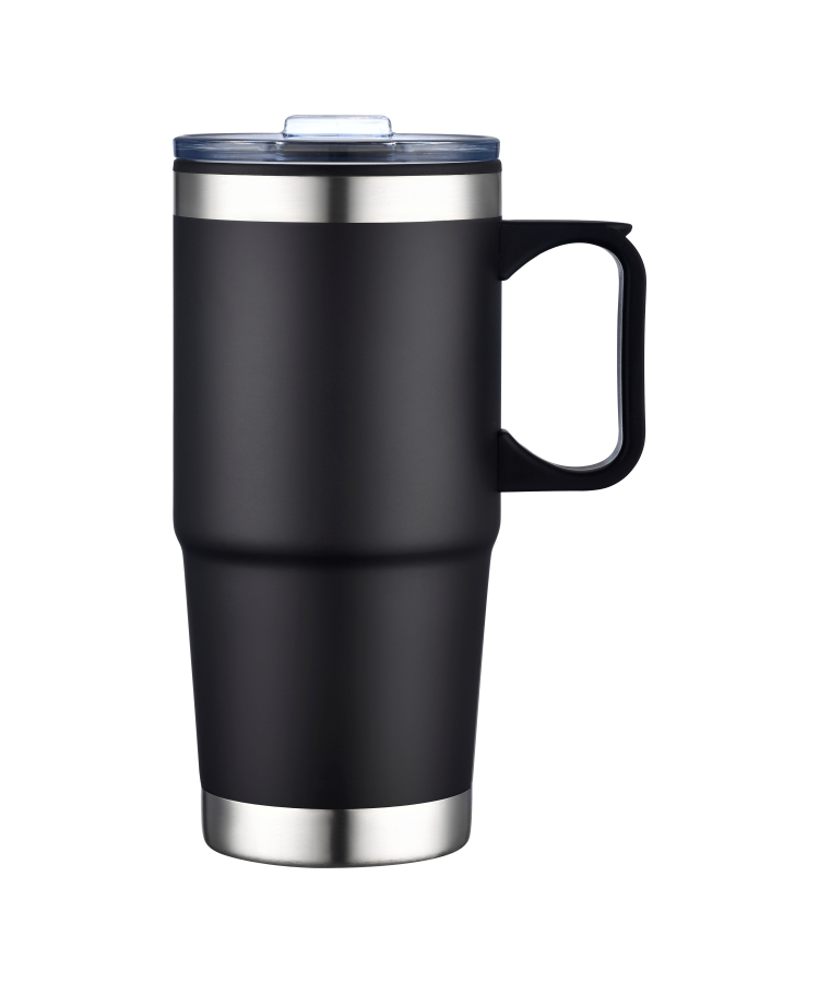 - This durable mug features an easy-grip handle and a spill-resistant slide-action lid, keeping your beverages hot for up to 8 hours and cold for 12 hours.