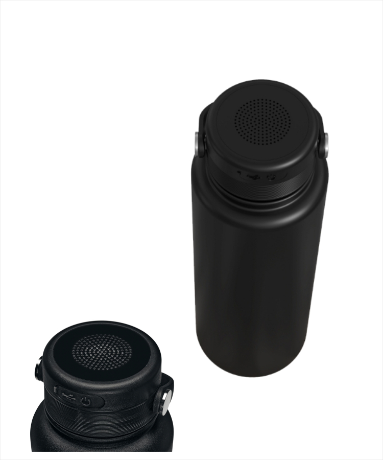 - This sleek, high-quality bottle features a Bluetooth speaker cap, allowing you to enjoy music on the go.
