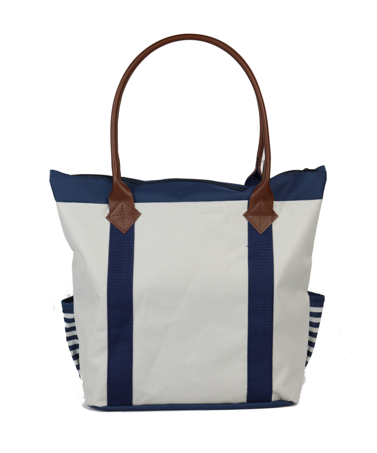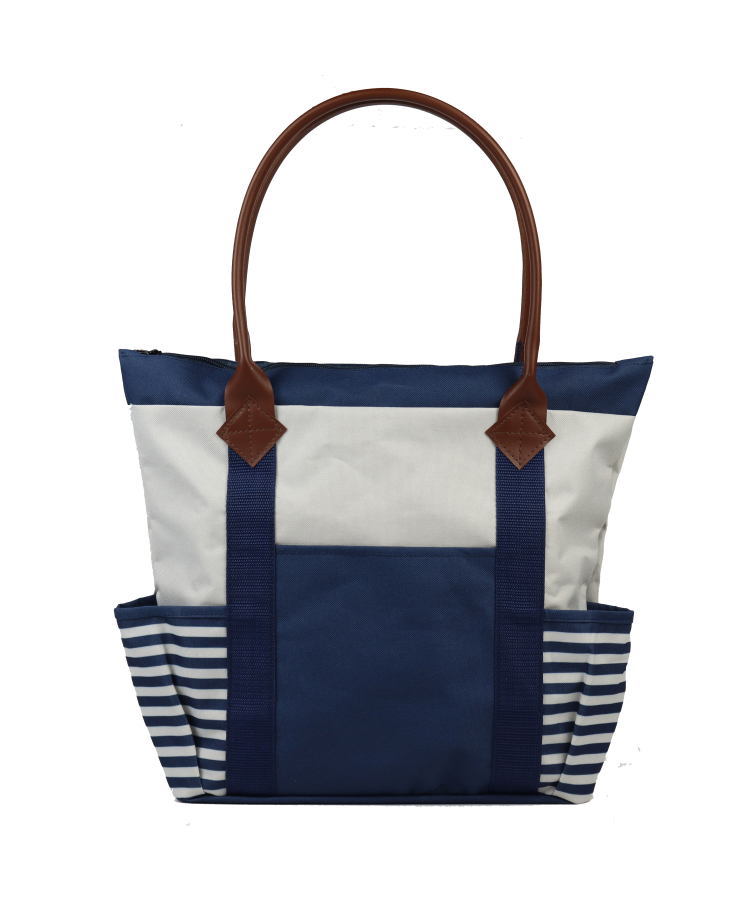 - Made from durable 600D polyester with a PVC coating, this tote features a spacious main pocket with a secure zipper closure, along with two side pockets for extra storage.