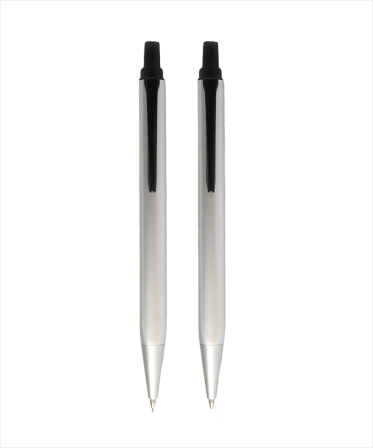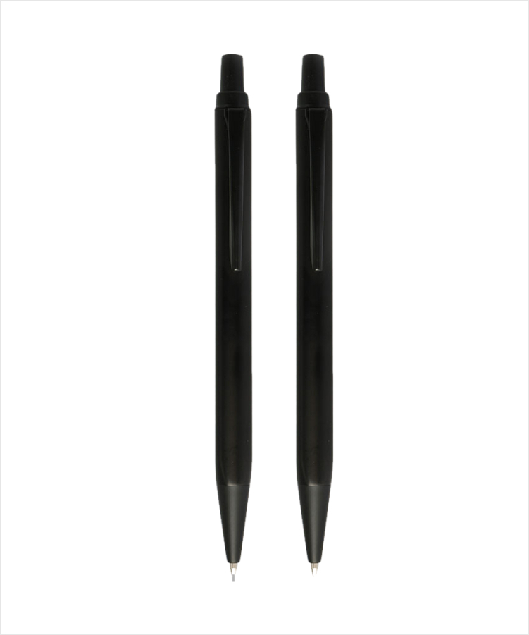 - This high-end set includes a retractable ballpoint pen and a matching mechanical pencil, both with a smooth matte finish and contrasting black accents.