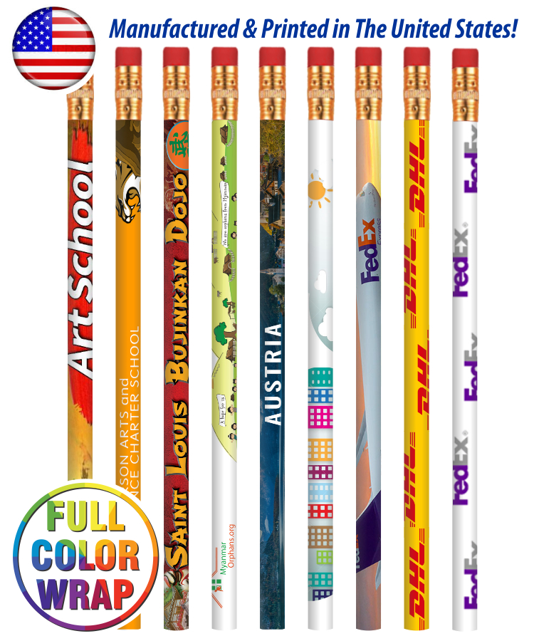 ![]() Union Printed - USA Made - High Quality Pencils Pink Erasers with Full Color Wrap Print |