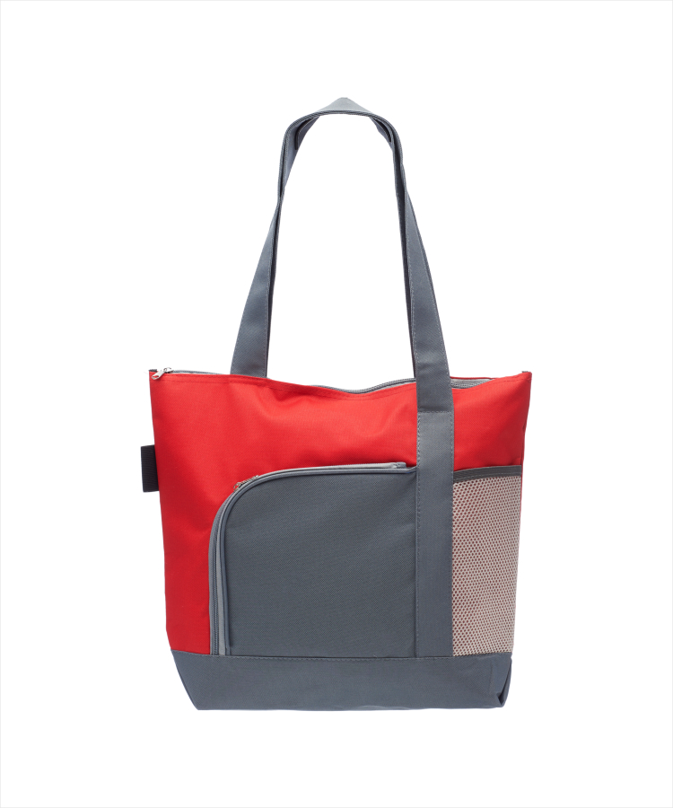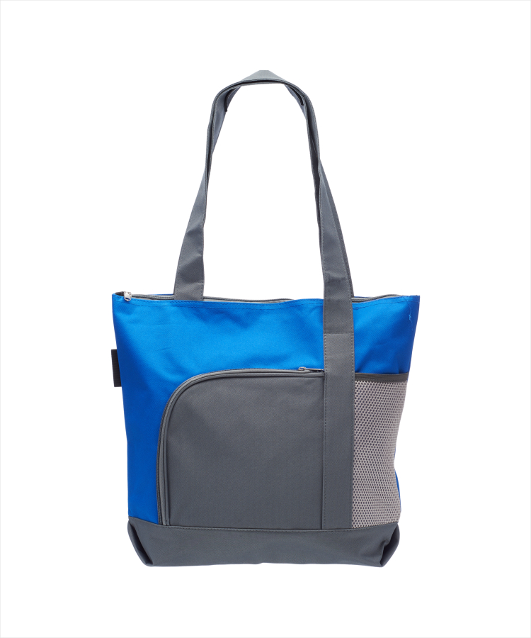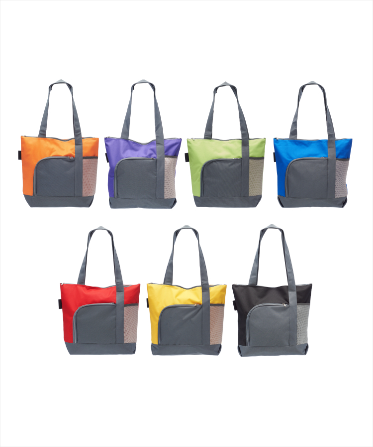 - Presenting the Go Getter Two-Tone Tote Bag! This stylish tote features a spacious main compartment and a convenient front zippered pocket (8”W x 8”H) for easy access.