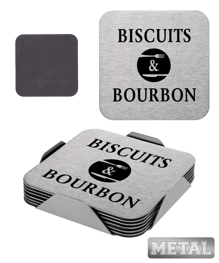 6 Piece Square stainless steel Coaster Set with Stand