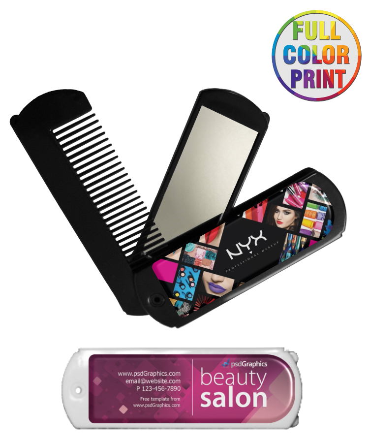 Union Printed - Oblong Travel Folding Mirror and Comb Set - Full-Color Dome Print