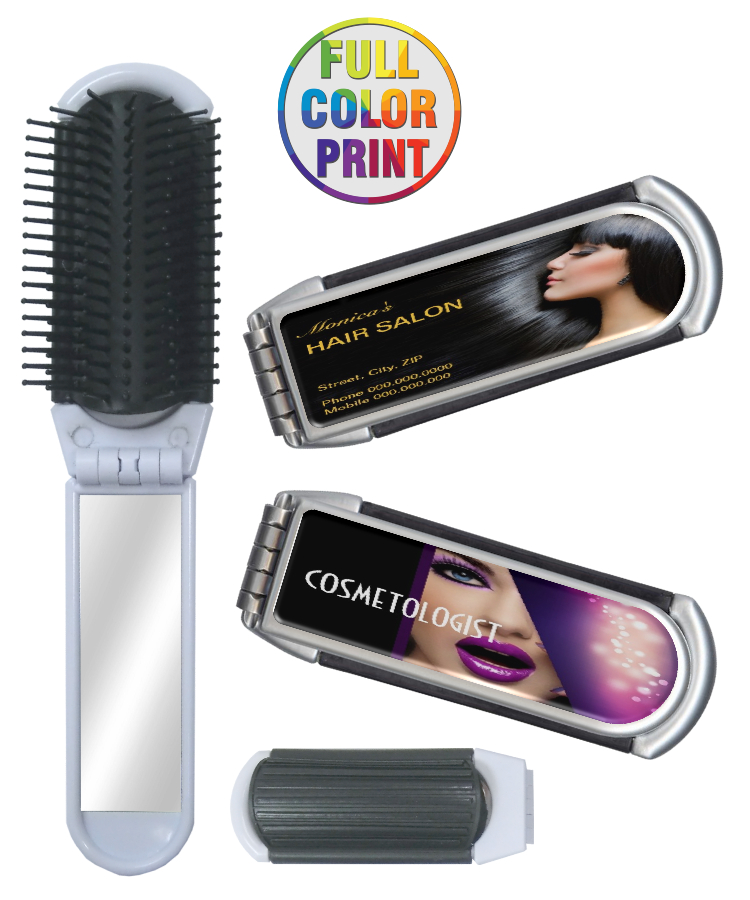 Union Printed - Folding Hair Brush and Mirror Set - Full-Color Dome Logo