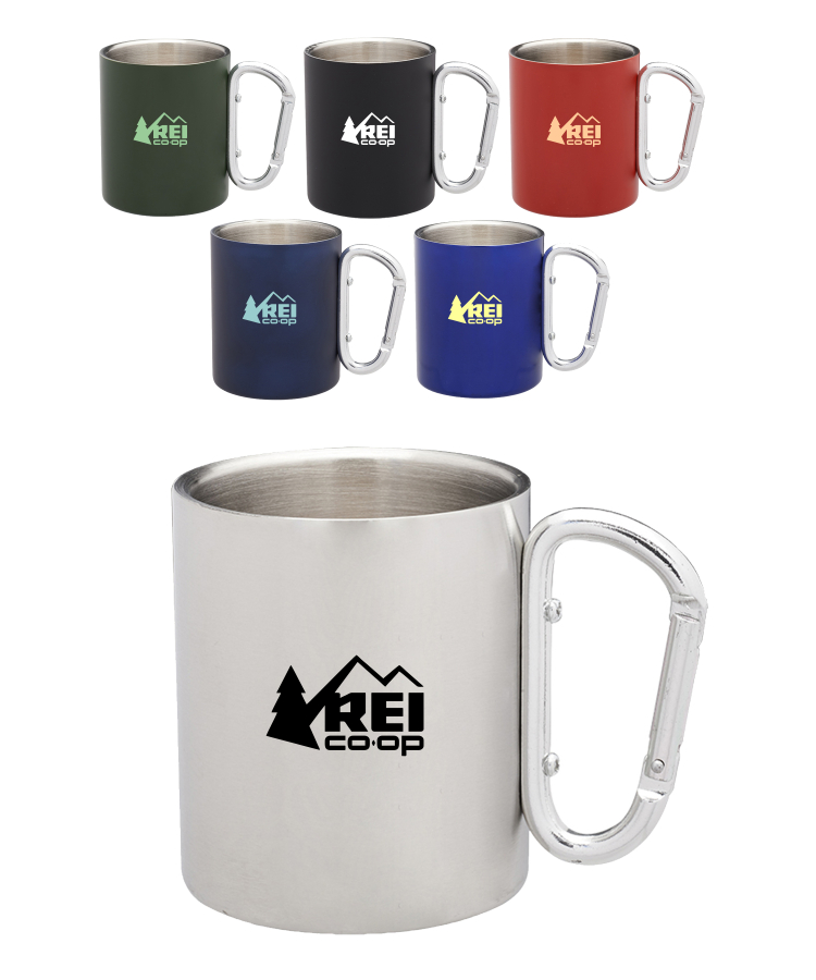 Union Printed - 10 oz. Carabiner Handle Stainless Steel Mugs
