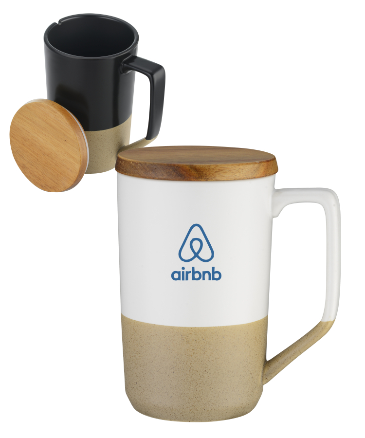15 oz Two-Tone Ceramic Mug w/ Wood lid