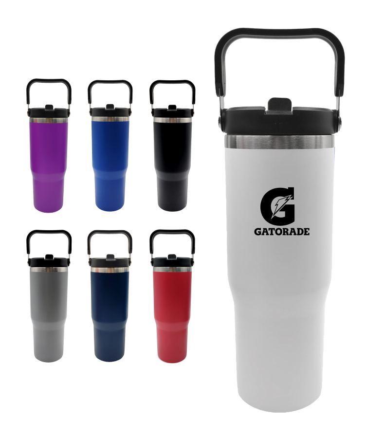 Union Printed - 30oz. Stainless Steel Insulated Mug w/ Handle & Built-In Straw