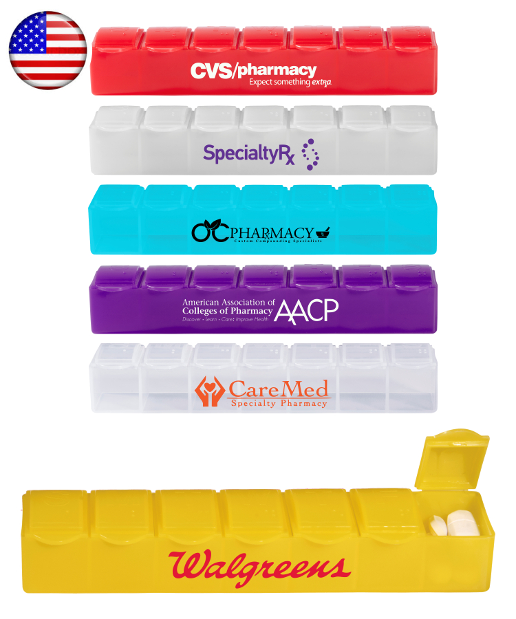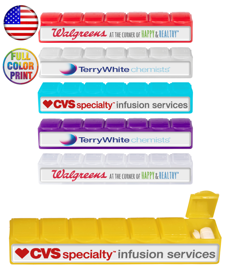 Union Printed - 7-Day Compartment Folding Pill Box Organizer - Full-Color Print