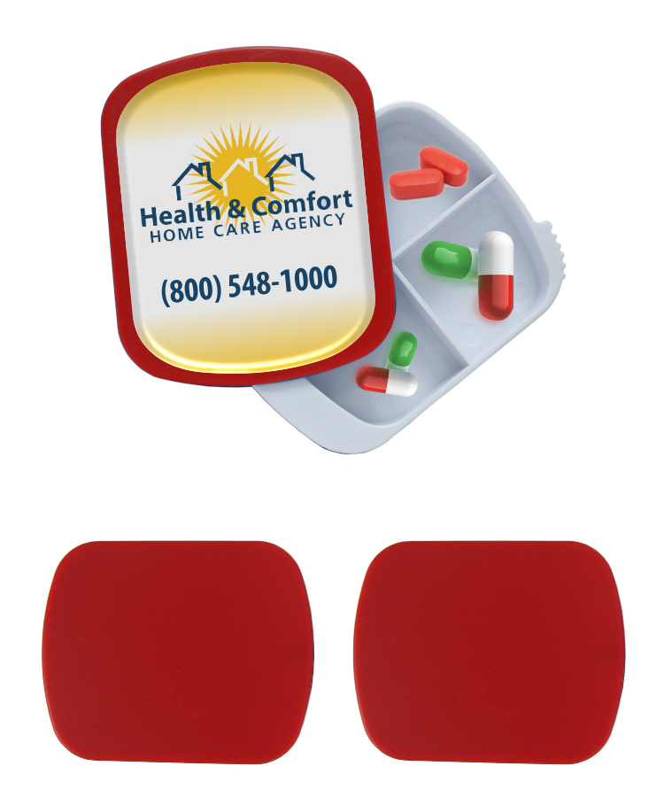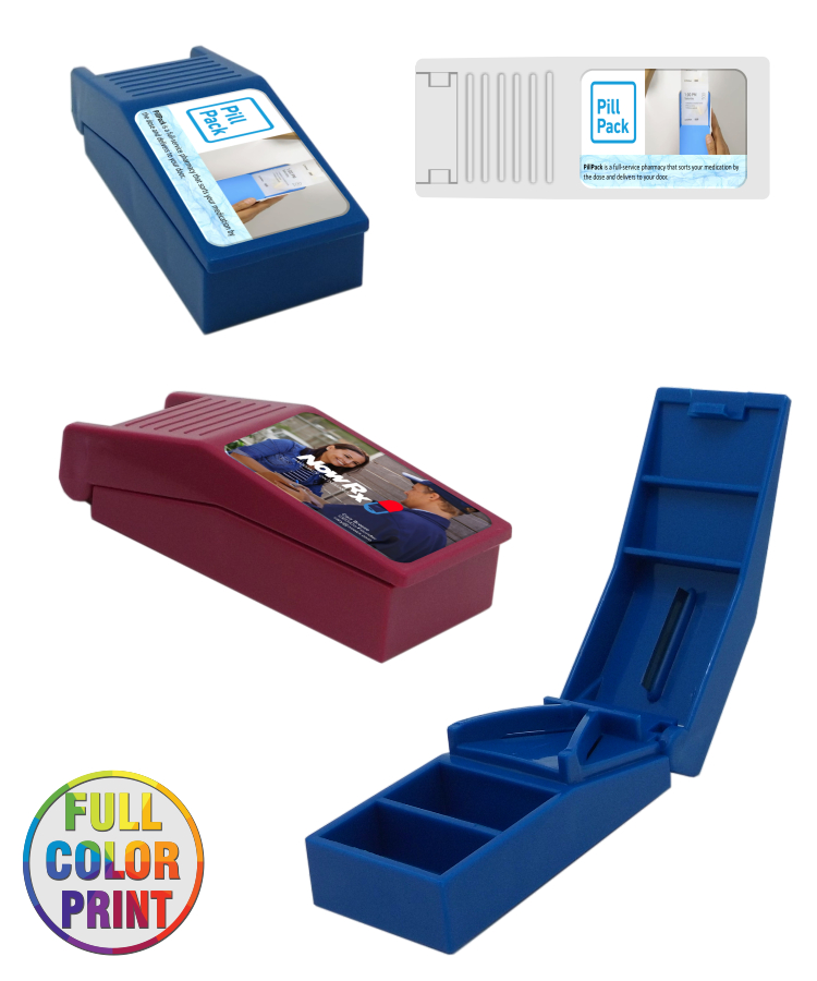 Union Printed - 2-in-1 Pill Box with Tablet/Pill Cutter/Splitter - Full Color Dome Logo