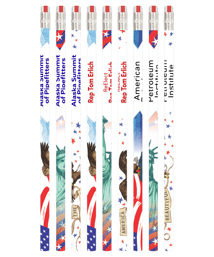 Union Printed - USA Made Americana Segment Design Pencils with 1-Color Logo