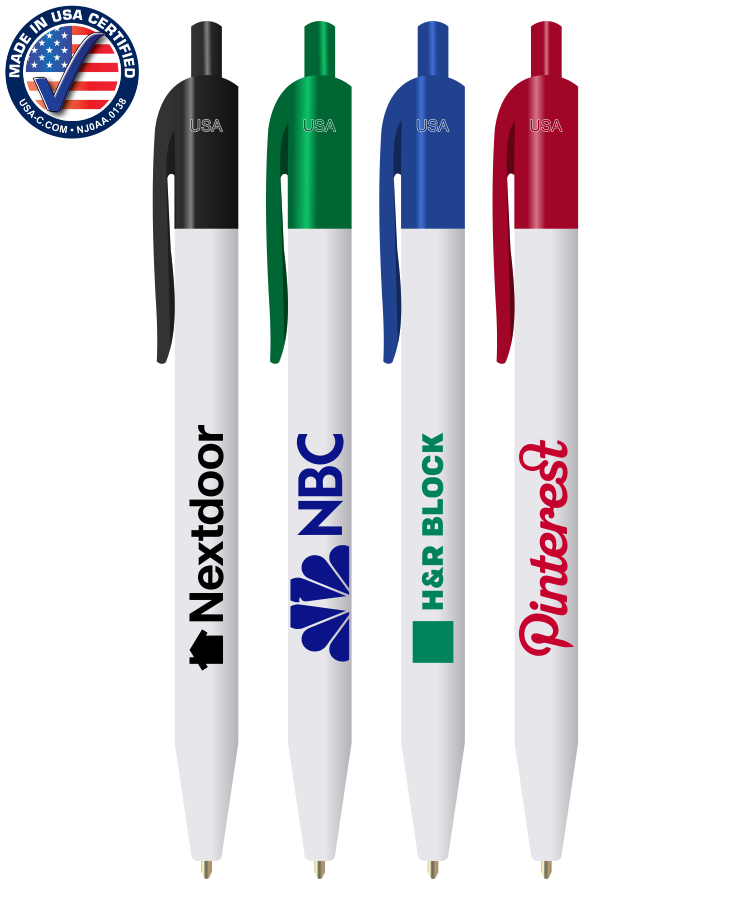 Union Printed - USA Made - USA ECO White Barrel Click Pens with 1-Color Trim