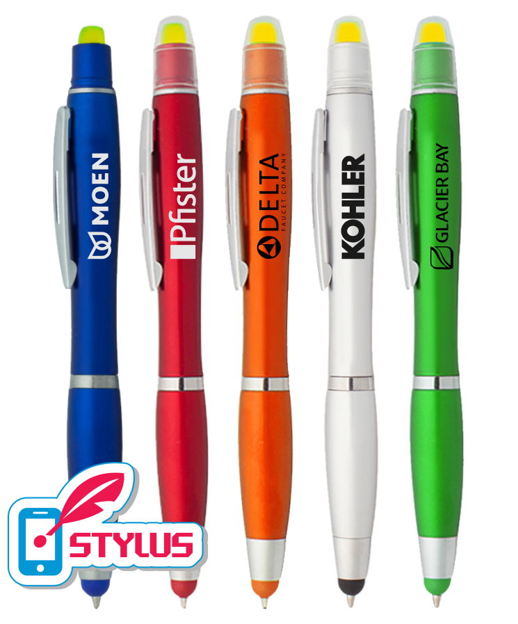Union Printed - 3-in-1 Combo - Stylus > Twsit Pen > Gel Highlighter with 1-Color Logo