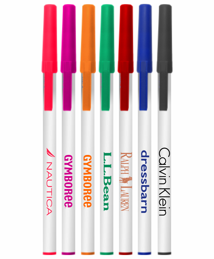 Union Printed - White Stick Pens with Colored Caps - Blue Ink
