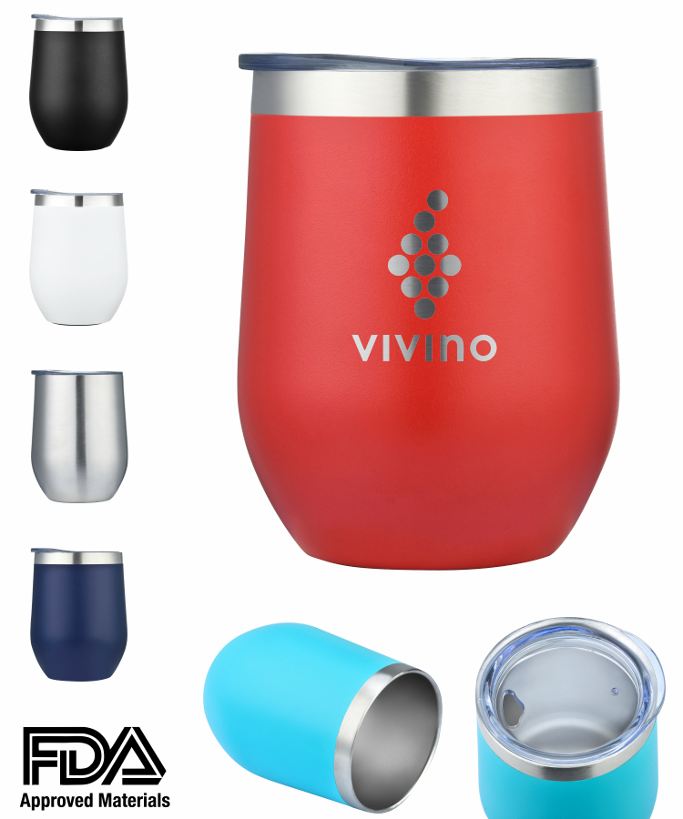 - Union Printed, 12 oz Double Wall Stainless Steel vacuum Insulated Wine goblet , This travel drinkware tumbler features 18/8 Stainless Steel liner with copper coating vacuum isolation to keep your beverages hot for 8 hours and cold for 12 hours! lid with rubber seal to minimize spills, BPA Free, FDA Approved. Hand Wash Only.
