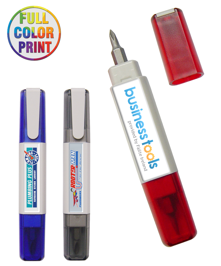 Union Printed - 2-Sided Screwdriver Tool with Pocket Clip - Full-Color Logo