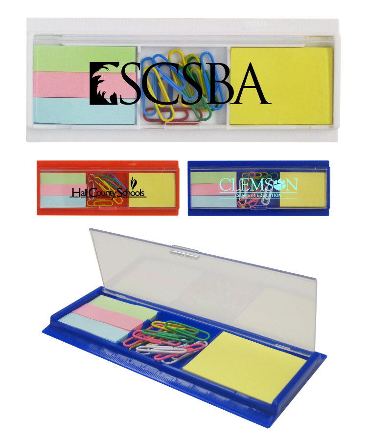 Union Printed - Sticky Note Set With Paper Clip & Ruler Full Color Logo