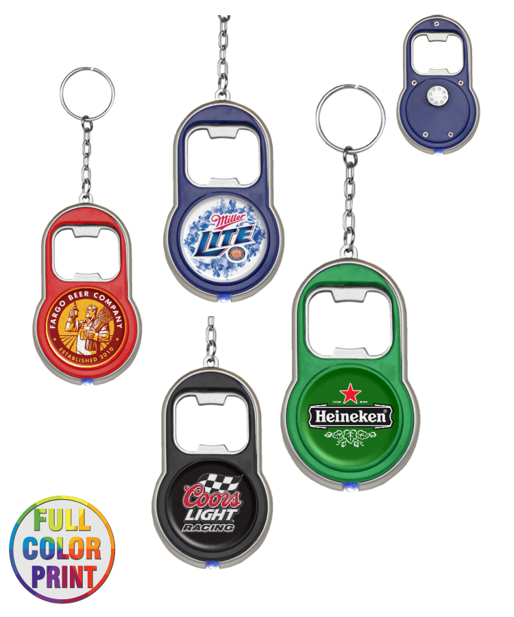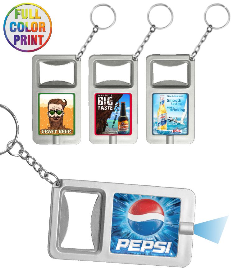 Union Printed - Bottle Opener With LED Flashlight Keychain - Full Color Logo
