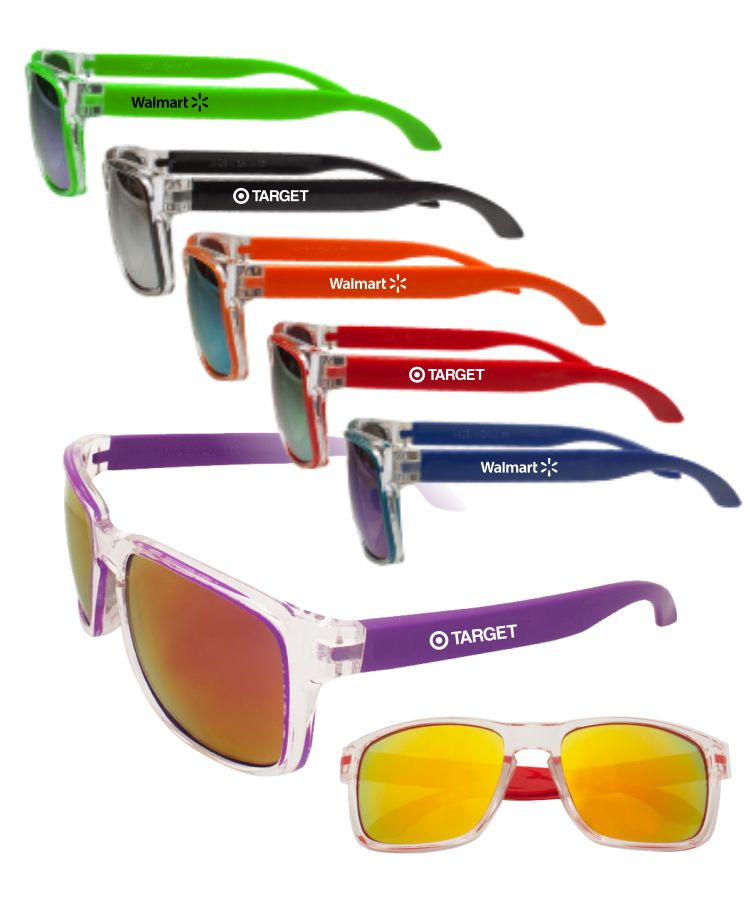 Union Printed - Two-Tone Mirrored Sunglasses with 1-Color Logo