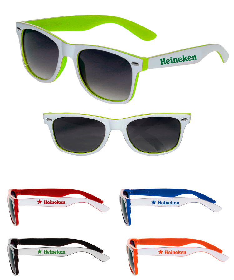 Union Printed - Two Color White Sunglasses with 1-Color Logo